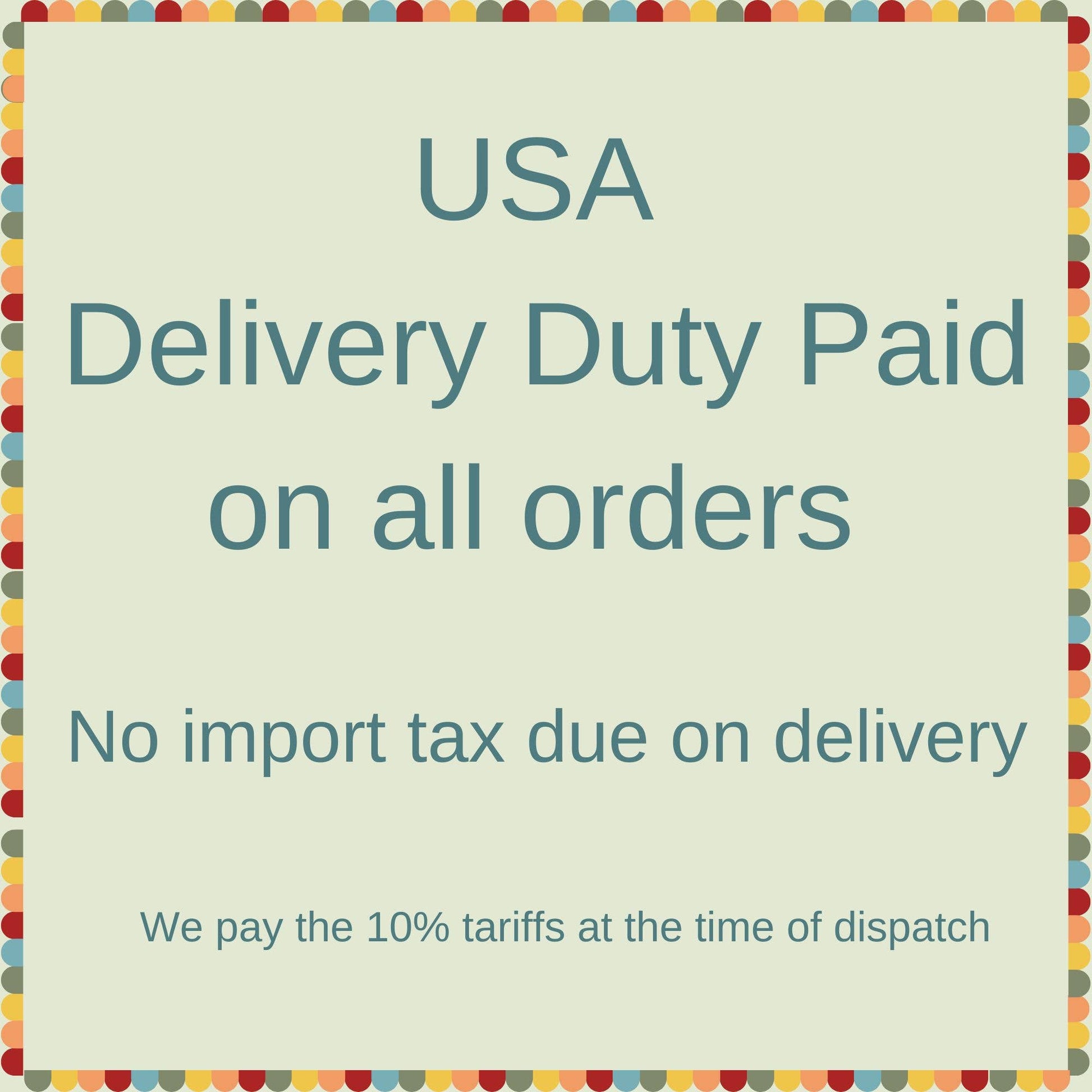 Please note: All USA orders are shipped PDDP (Postal Delivery Duty Paid) so you have no unexpected charges on delivery.