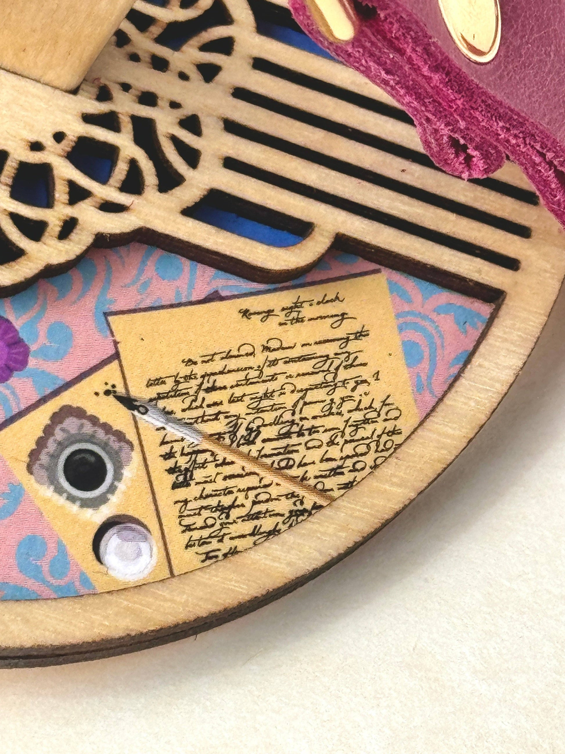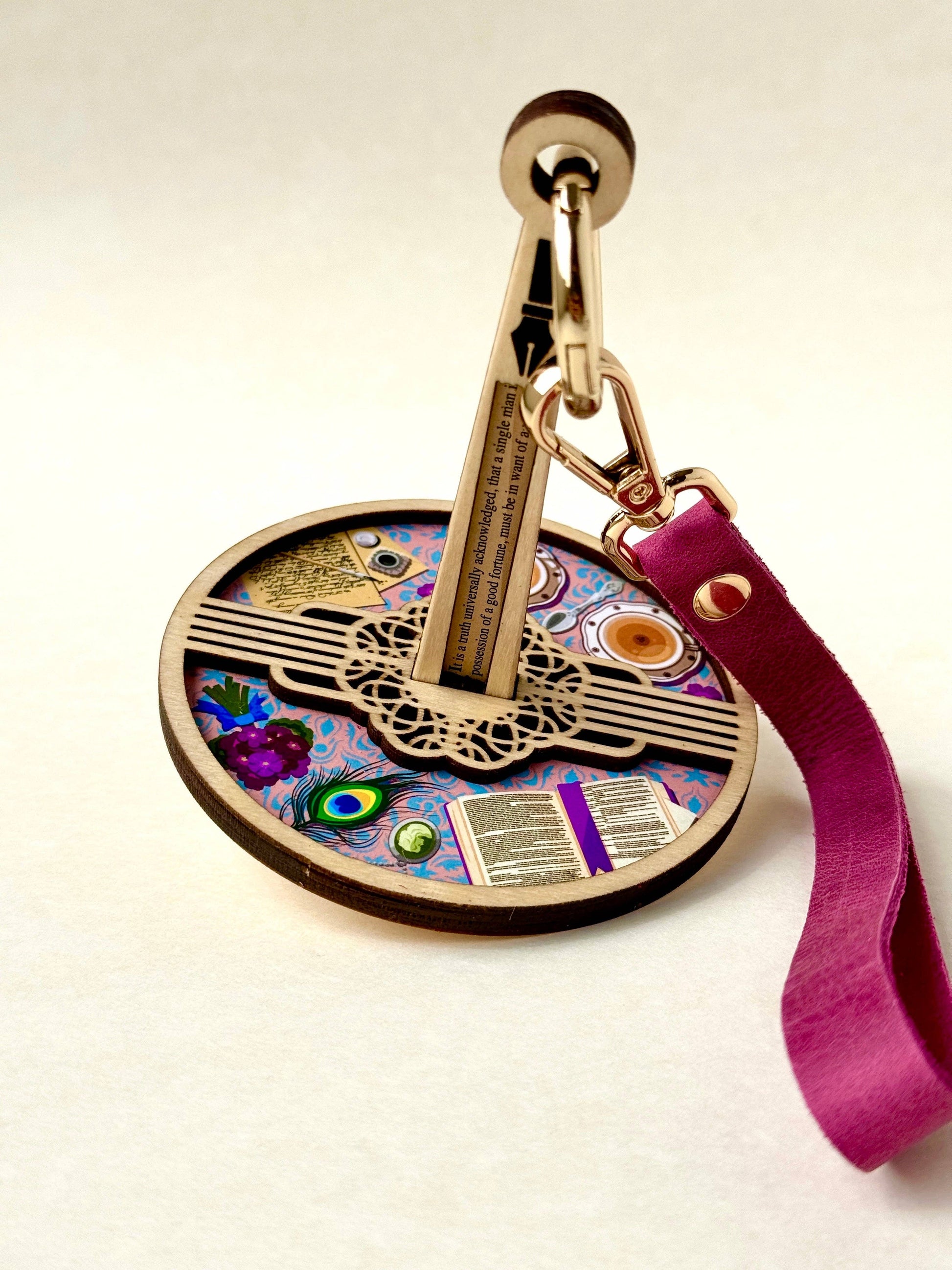 Inspired by Elizabeth Bennet’s wit and spirit, this design features a soft floral motif with romantic touches—perfect for keeping your yarn tidy while you stitch your own story. Meet the Mini Minder (USPTO Patent Pending), a wrist yarn holder designed for knitters and crocheters. Say goodbye to tangled yarn and lost balls! Just stick your yarn on the Mini Minder and wear it on your wrist or clip it to your bag. The Mini Minder lets you enjoy hassle-free stitching wherever you go! Every mini minder comes with a beautiful leather strap hand made in the Lemonwood studio (made from Italian pebble grain/colorful straps or American Kodiak leather/brown, black and Navy blue)