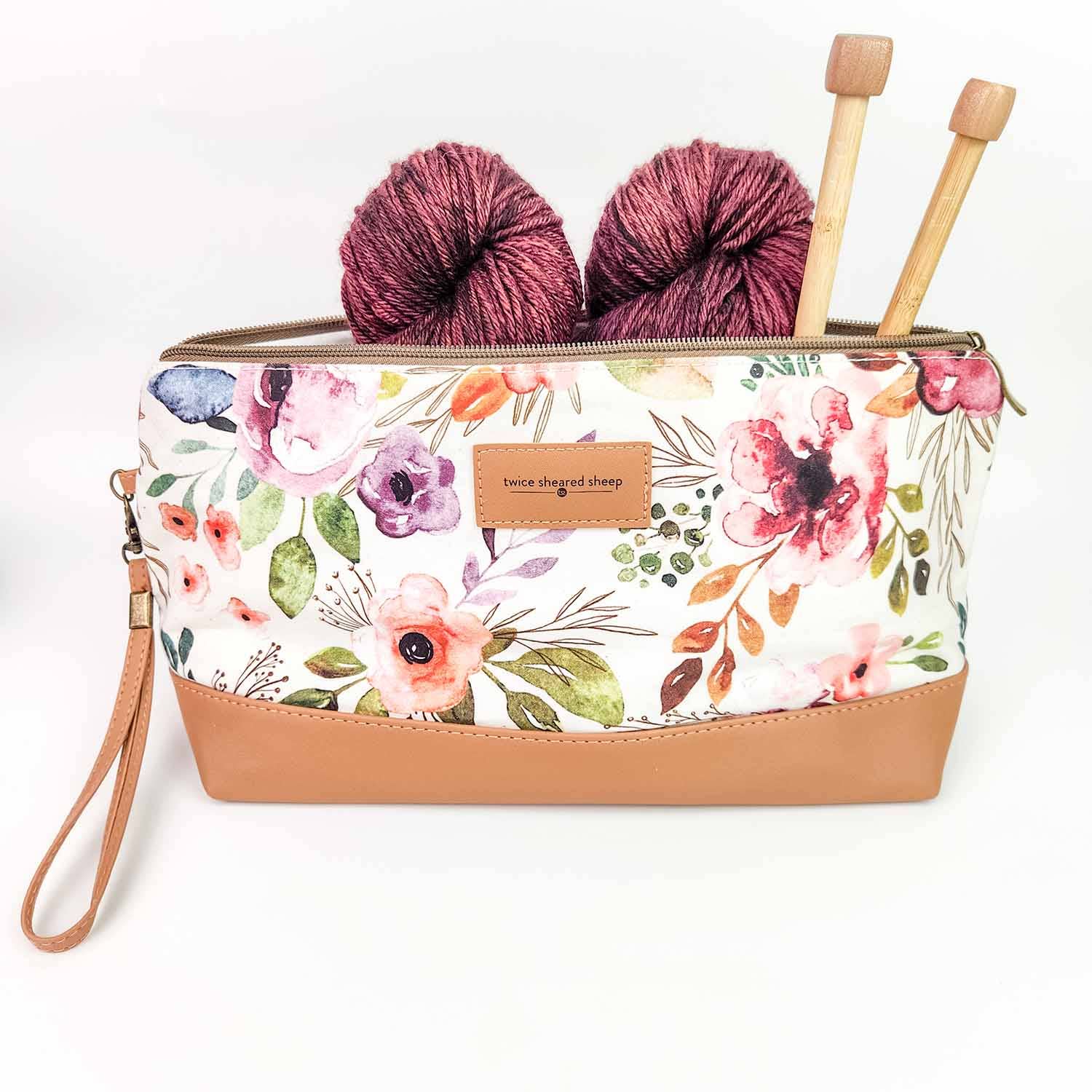 Spring Floral Trinity Bag – Medium Zippered Knitting Project Bag