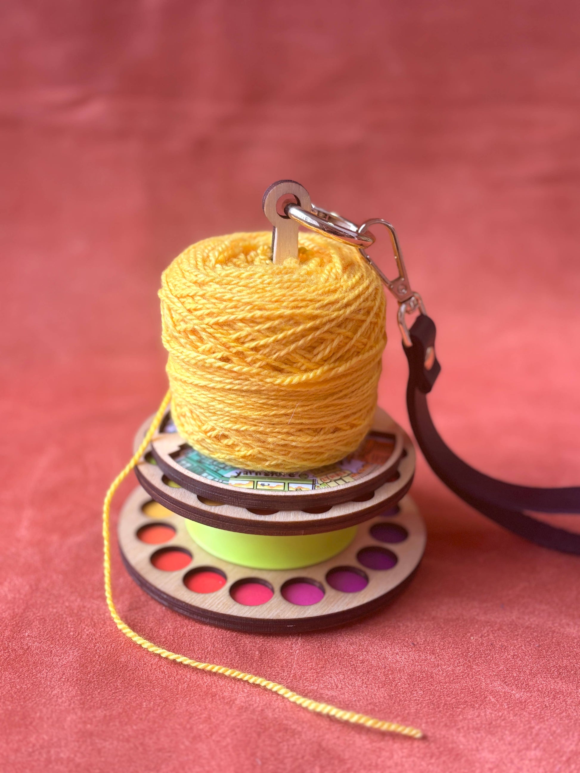 Meet our long awaited newest addition, the Whirl! The Whirl adds even more versatility to your Mini Minder allowing it to become one of the smoothest yarn spinners on the market. Simply stick your Mini Minder in, twist for extra stability, unclip the strap, and start stitching!